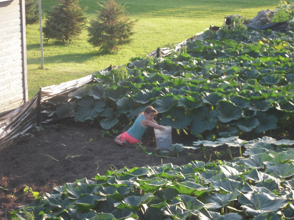 Whole family working :) Saara burying the vines with me while Joe is at work :) She is doing great job!