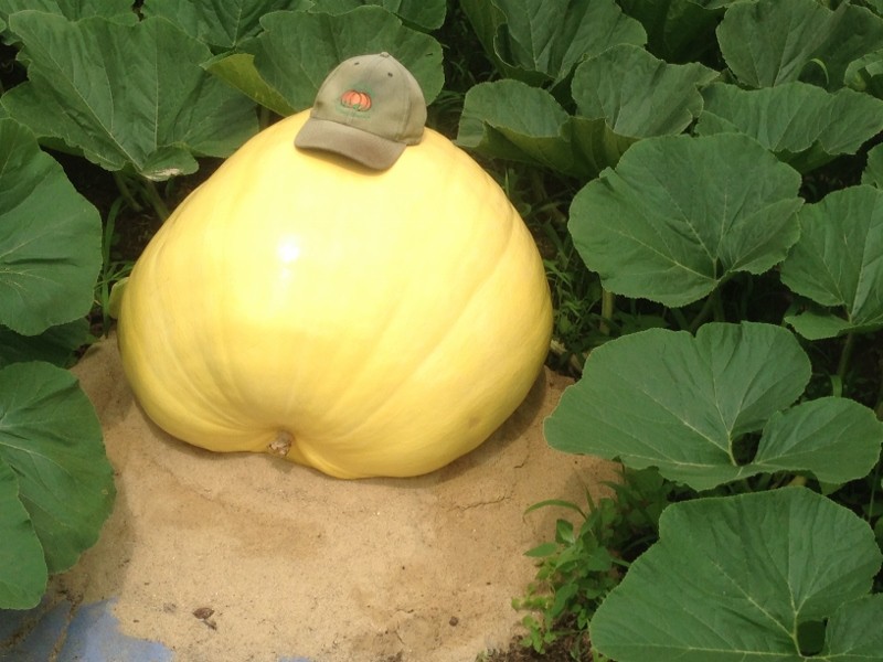 1813 Northrup 13, It appears to become a nice orange pumpkin but it is already sucking under the blossom. Measurements are 89"cx56"ssx59"ee - 204" ott - 196lbs