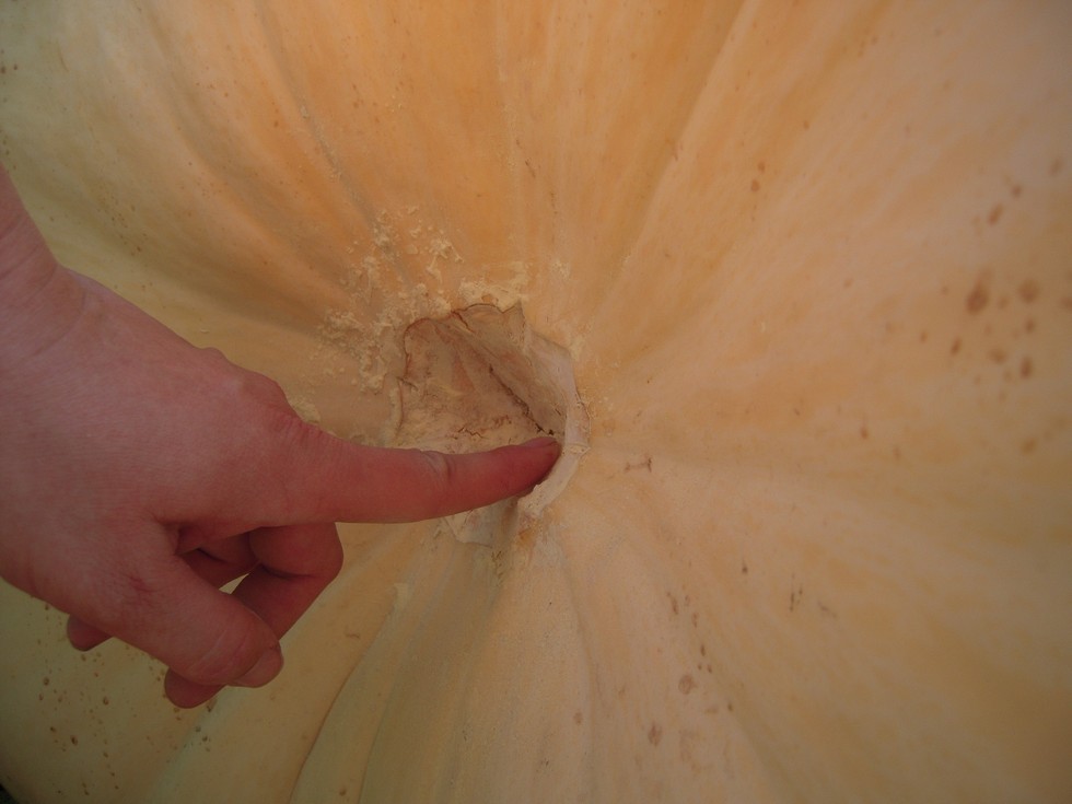 Blossom end, without the blossom, on our 2323. Lost the blossom to rot 07/19. It's pretty much healed but growing inwards now, we don't really expect it to hold...