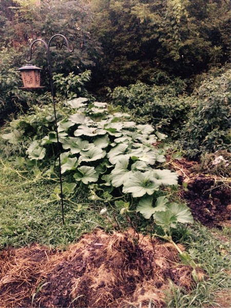 Got a much needed shot of rain.. Not much to speak of but enough to even out the moisture in the soil ... This here is the 1218.5 Morris squash growing in the compost pile...no food or water just bug and fungus spray... Had double vine that I pinched and it corrected ... Females are slow to move...I'm a bit shocked at the health fn the plant considering how dry it's been... Has been acting funny though