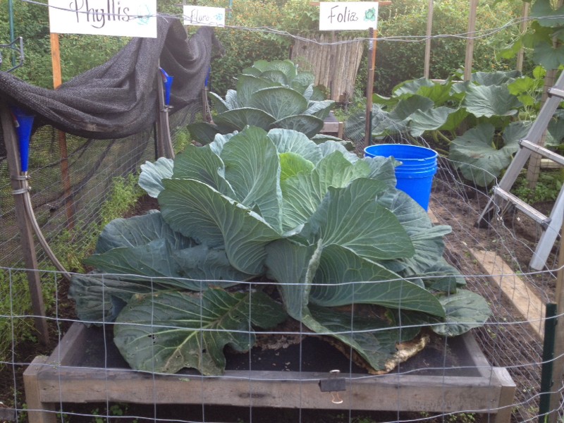 Giant cabbages still seem to be happy and are starting to head.