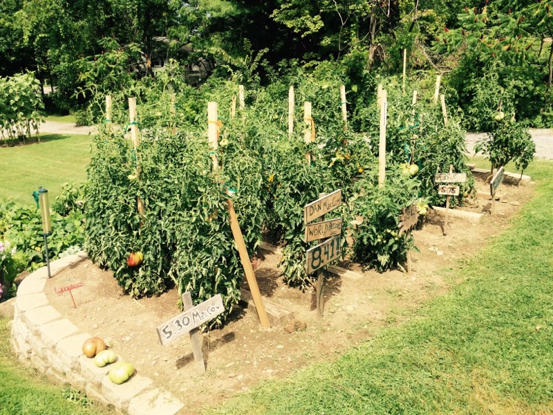 Storms are headed this way for tonight..."the real MacCoy "was swaying the stake in these wind gusts.. Added extra support...this tomato looks huge to me...will spray dunkels in the morning..(I have good rain coat in case I'm out there hold him in place all night)...I'm in SLAAAMMeR HEAVEN!!