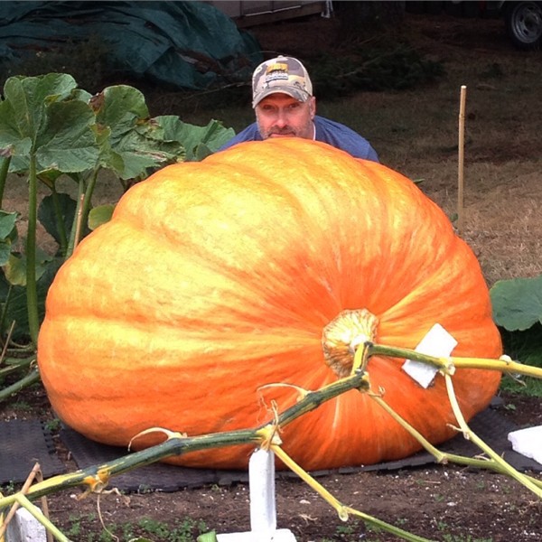 My husband being funny and trying to make the pumpkin look extra giant. It was sitting at 675lbs yesterday. About a month until weigh-off.