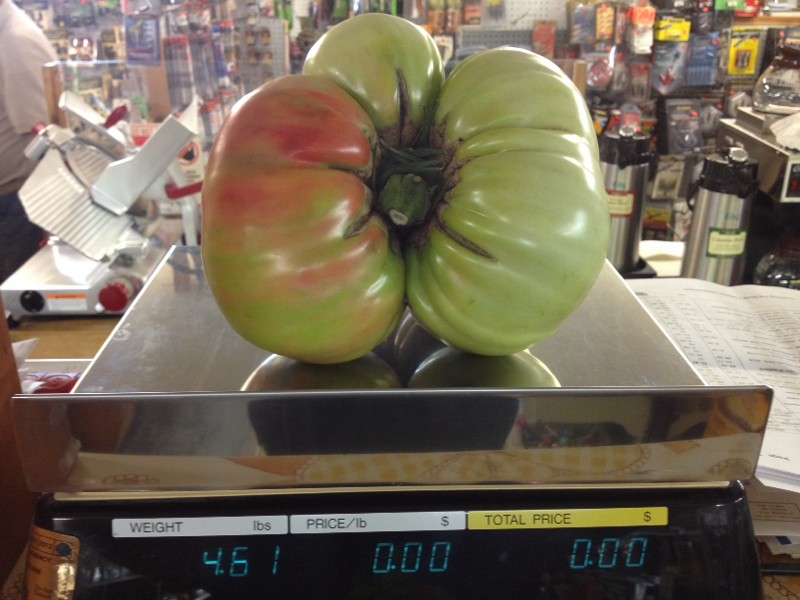 Last tomato of the year off the 5.67 Porkchop. Not too shabby. Happy I got this seed in the veggie seed exchange!