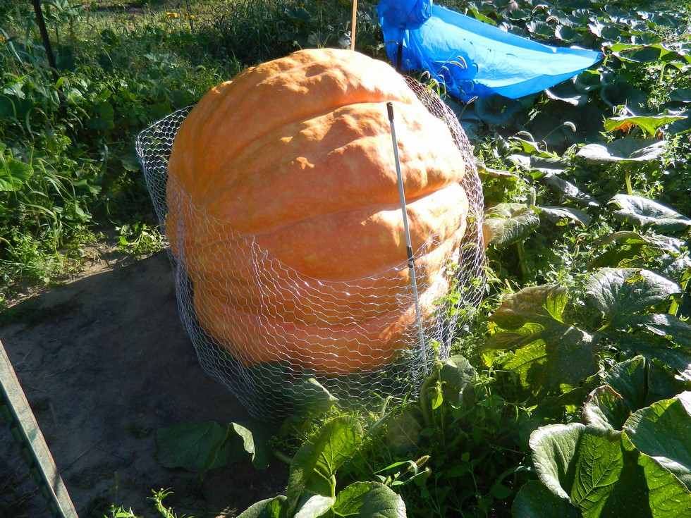 The 359 Foss taped 368", 1089#. 8# per day the past 5 days. It is getting dry so we will start watering again. And keep up the light feedings. Not enough to blow it up, just keep it going. Weather is supposed to warm up again so I hope the gains pick up. I got 2 rolls of chicken wire, enough to protect 3 big pumpkins and 3 watermelons. The rabbits might be able to squeeze under near the stem, but they usually attack the blossom end. I think they don't like fighting through the prickly vines to get at the stem.