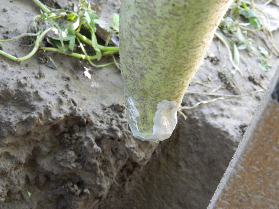I haven't totally given up on the long gourd yet. I cut off the rotten stuff and painted it with Daconil. Maybe it will heal over like a pumpkin will. I have nothing to lose at this point.