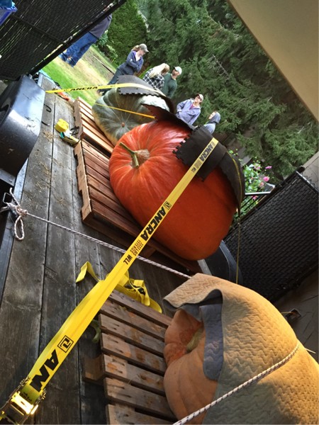 All the pumpkins and squash are loaded up for the weigh-off tomorrow! Huge thanks to our friends who came out and helped. And to Glenn for the lifting tarp! Loving my super orange pumpkin this year.