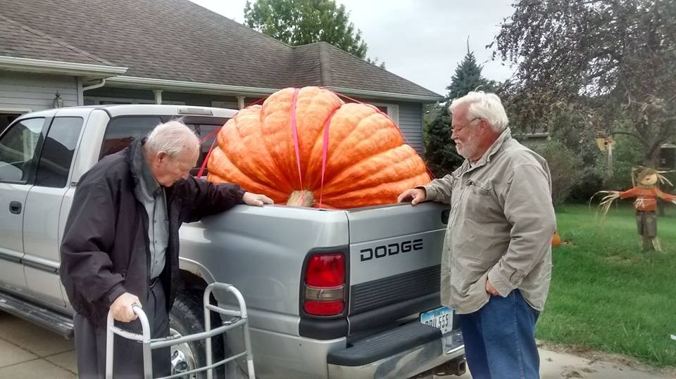 The day after Pumpkinfest, my daughter Jessica and I drove the 1047.5 the 55 miles to DeWitt so my parents could see it. Dad is getting along much better with his new hip and had to come outside and check out the pumpkin. We sure had a bunch of thumbs up, honks and waves on the highway. Jessica had success at Pumpkinfest as well. She won the Hall of Fame award with her Pumpkin Cheesecake Egg Rolls in the pumpkin recipe contest.
