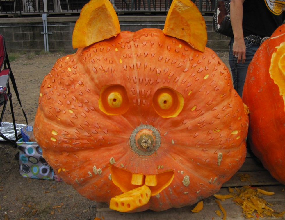 Here is a simple throw together pumpkin I did, using the blossom for the nose. Every little kid kept stealing his cheese.