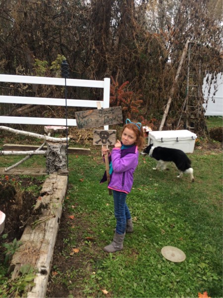 This is Katie bugs... My buddy's little girl...Uncle Steve tried to get her to eat a "candied pepper"...she ran over and grabbed the sign... Smart girl ... Let's see how observant she is with the Halloween candy I gave her...hehehe...