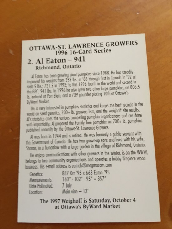 AL EATON's card backside