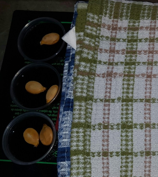 Letting the test seeds soak in a solution for about an hour or so. I keep it on the warming mat so the seed softens up a bit. I had success with a similar germination system last year.