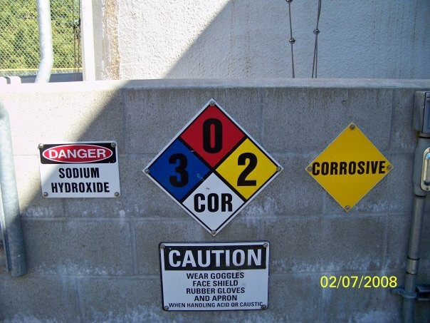 Signs on NaOH.use your PPE!