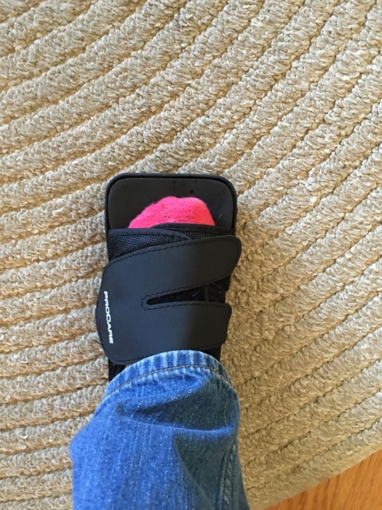 I am booted up for two weeks. I did NOT do this growing pumpkins! I can still take pics and help drag the hose around! I should be golden by burying vine time! I guess I have been spending too much time on the tennis court?