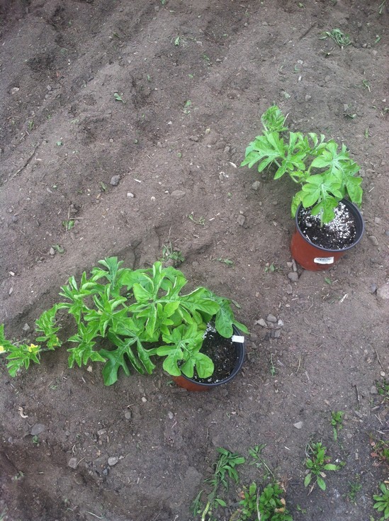 I pinched 2 little watermelons of the plant when I took them out of the hoop. Need to get these in the ground. New to watermelon growing so we'll see how this goes.