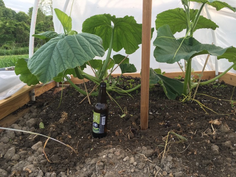 So excited I finally get to post my first beer bottle reference pic!!! I notice a lot of guys like to use there favorite beverage as a size reference when taking pics. I enjoy many different brews so I will try to post pics from now on label out so you can see what is keeping me sane as I get started into this sometimes already frustrating hobby!!! In this pic I am enjoying a southern tier 2x IPA. Almost got 3 out my 4 plants on the ground. One is reaching for the stars. Hope to chose my 2 keepers by this weekend.