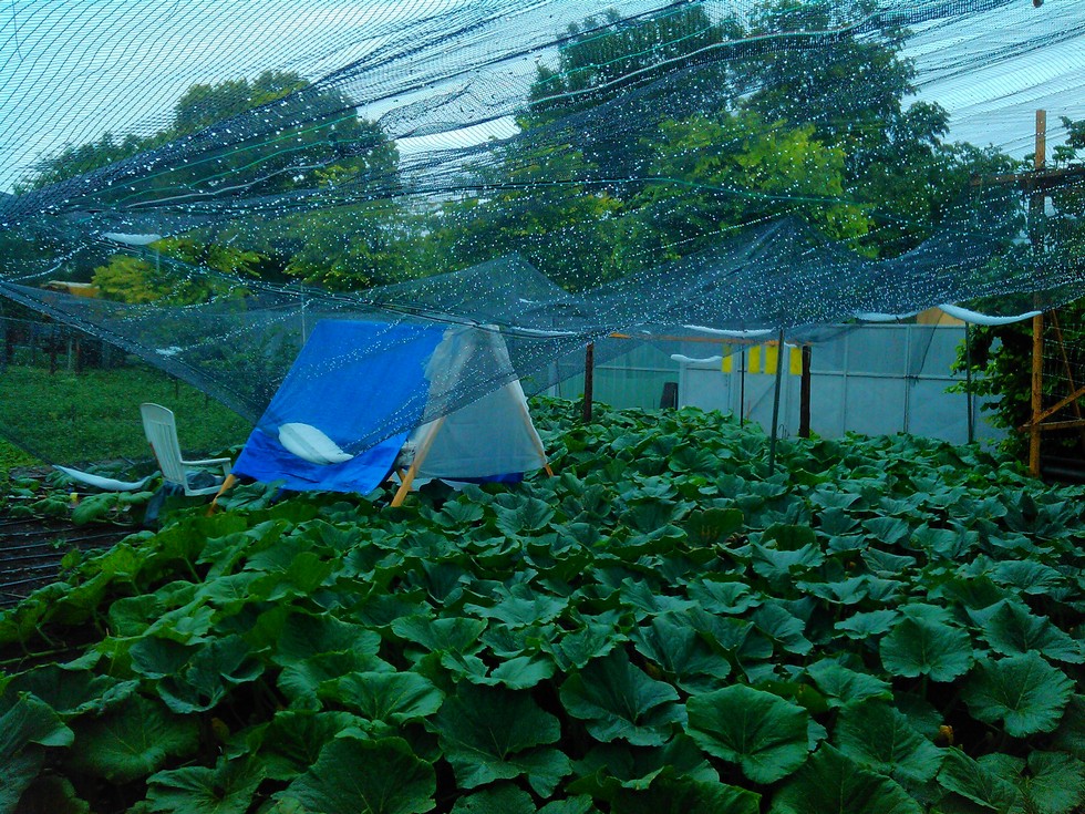Strong hailstorm in the afternoon with heavy rain (over 40 l per m2 for one hour). Lucky for me and my pumpkins that the net has worked and my plants were protected. Who has a wiskey? Anyway, it was a stress for plants and I will use some aminoacids for recovery in any case...and some against grey mold (Botritis cinerea)