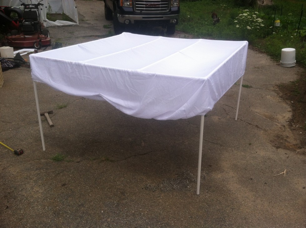 Covered with a cheap queen size fitted sheet.
