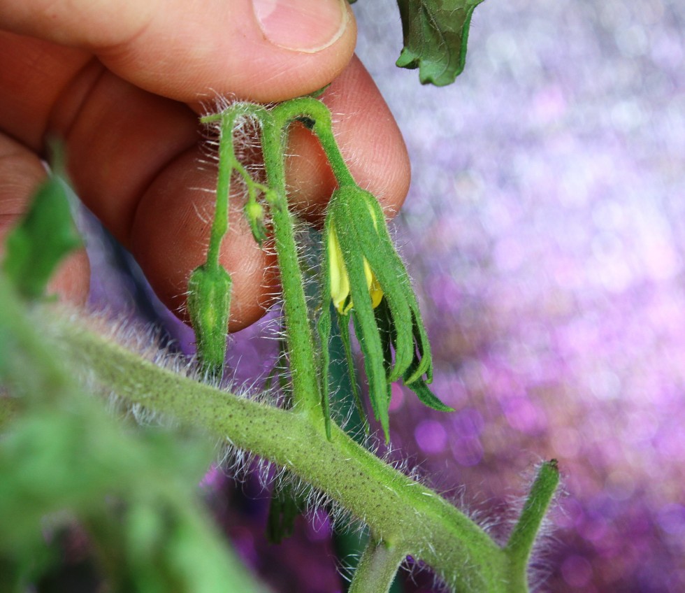 I'm stoked! It is all coming down to this. One large flower on one 4.66 Russian Oxheart. The closest plant to the lights. The Big Zacs are not flowering and the other Oxheart has small one's. It is cold and snowy outside for Oregon standards. Inside it's 75F and 45% humidity.