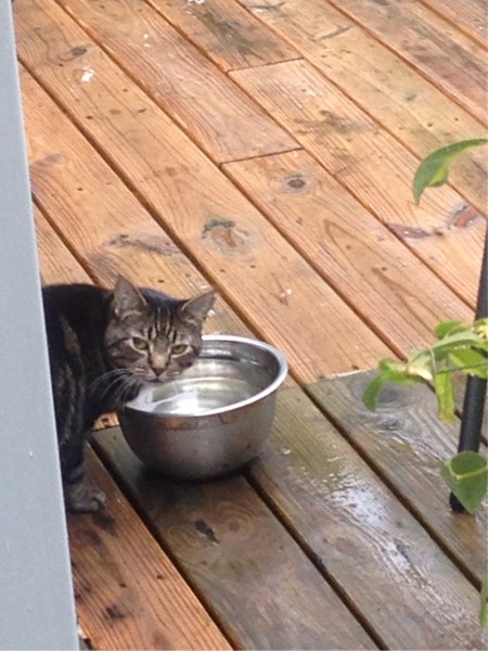 Kelp meal bowl I used on Tuesday... been a steady light rain for about 48 hours now. That's my sidekick and patch protector Roxy getting some rainwater. Puddle water is her favorite. Doesn't look like it's drying out any time soon, but patch is draining well after the deep dig.