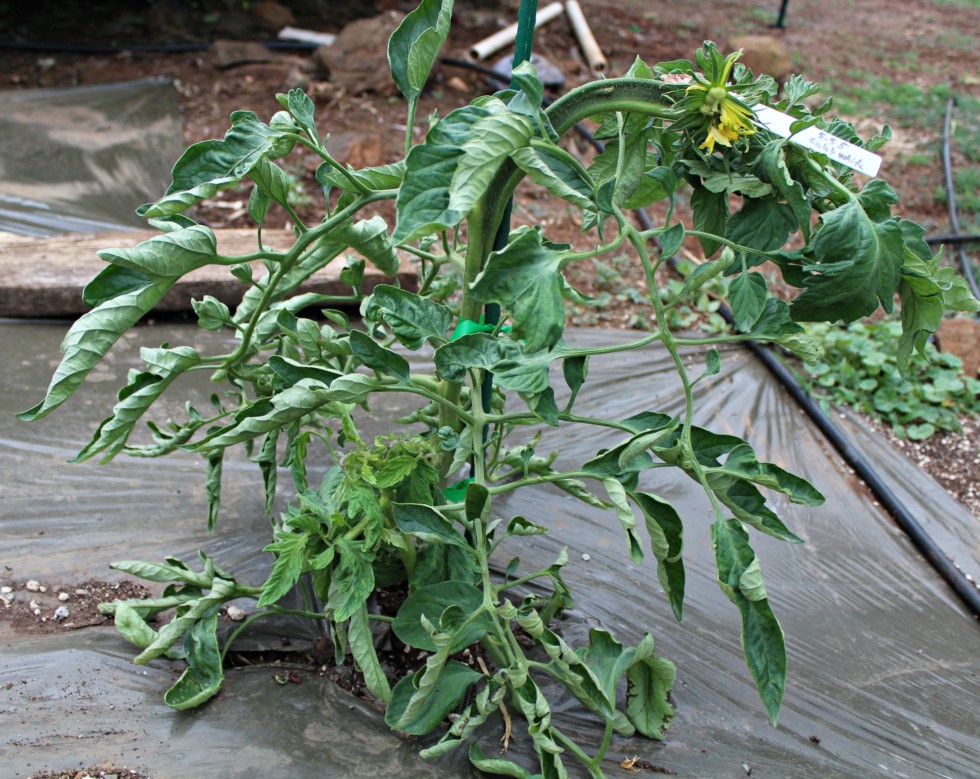 The 5.55 Caleb White is crazy small! It is only 18" tall and topped with its own flower. There was a wayward branch growing out of the back of the flower that I had to clip off. This is the plants first flower and only flower.