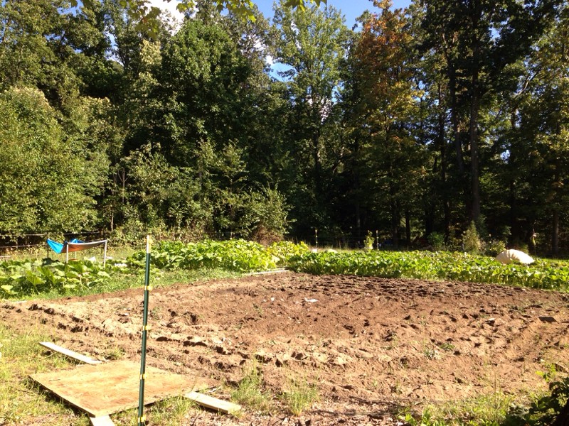 All cleaned up. Can see the glow on Kirsha's pumpkin underneath the blue tarp on the left, Pebbles to the right.