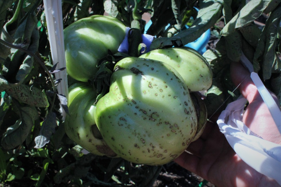 There is another grower in our club that grew the 4.66 Oxheart that had multiple fruit. I think last year some other flower from a BZ pollinated the oxheart when I wasn't looken. This was next to the 7.05 Porkchip last year. Normally they are single fruit. This whole plant had multiple fruit. Had some nice megablooms flowers that took near the top but the friggen deer ate them last month. This one is at the bottom. I swear this thing is over 60 days old and still green, growing slowly. BNOT talked about different plants crossing pollen and I am a believer now. Still going to call it an oxheart..
