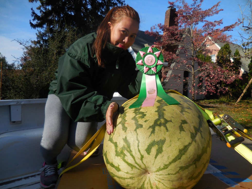 I took photo my fiancee with my big watermelon.. I"m happy that she is here now
