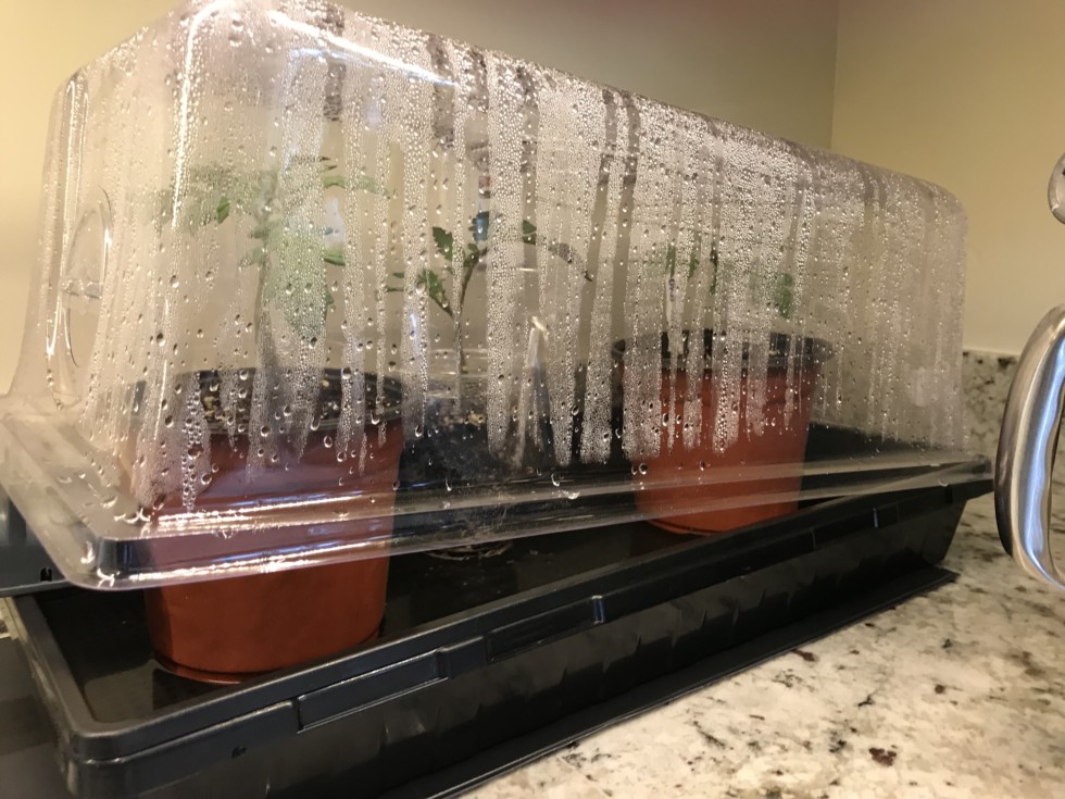 I�m trying to wean my grafted tomatoes off of high humidity. They aren�t looking great. Hopefully they pull through. I do have back ups though.
