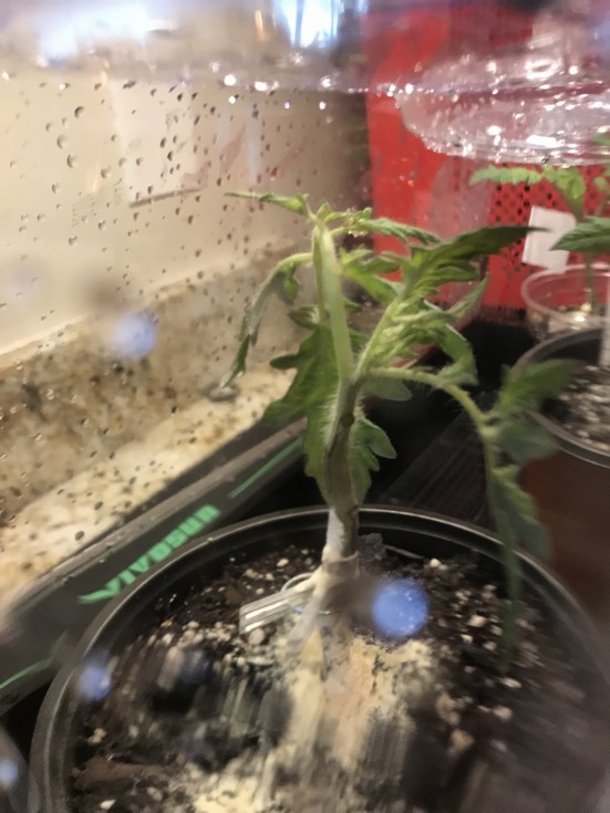 My poor Bigzarro tomatoes grafted to DRO141 Rootstock. I think I may need a re-do on this idea. I may have waited too long and likely should have done the graft when they were younger. They immediately wilt when the humidity goes down. before running off to work this morning I poofed some micronized sulfur dust on the graft unions. Hopefully it helps...