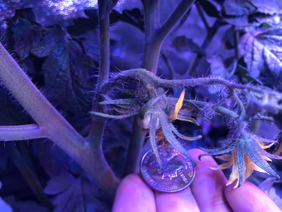First flower to bloom on the 3.75 Bigzarro has set a tomato! Oh Yeah!