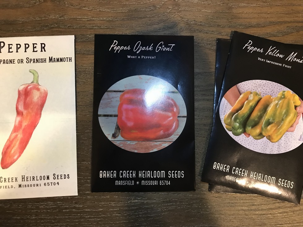 Got some bell pepper seeds to put in the garden! Spanish Mammoth Ozark Giant Yellow Monster