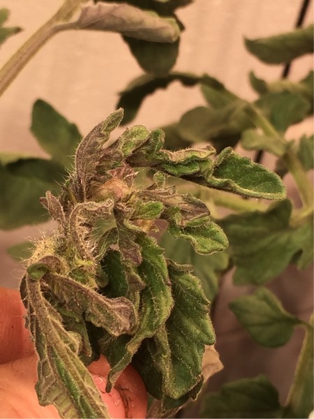 I am trying to push my last three tomatoes just as hard as I can. Calculated ppm ratios (50 % EC meter) comes out to ppms of 291 N, 109 P, 609 K, 544 Ca and 169 Mg. With micro's I am at about 1800 ppm (3.6 EC). Obviously the random new shoots growing are coming out deformed but the fruits are growing well. Overall the plants are healthier now than I have had in the past at this stage but much more tweaking of nutrients ratios will be needed to get to the next stage.