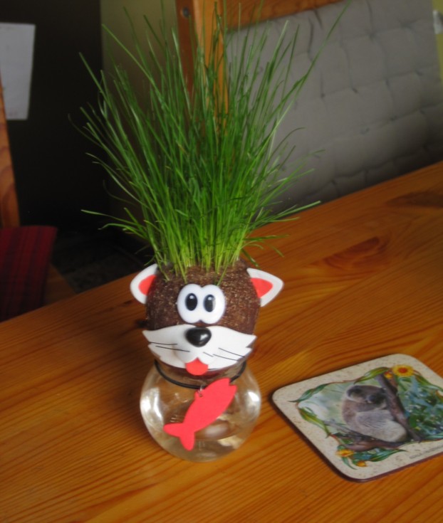 During the past couple of weeks most of the fresh green was limited to indoor greenery, even this little cat turned green, somehow :D Anyway, whereas others still have some snow on the patch, we�ve got a surprisingly warm and sunny first half of April (and fingers crossed the 2nd half will become a nice one, too) and garden/pumpkin patch will become green again very soon.
