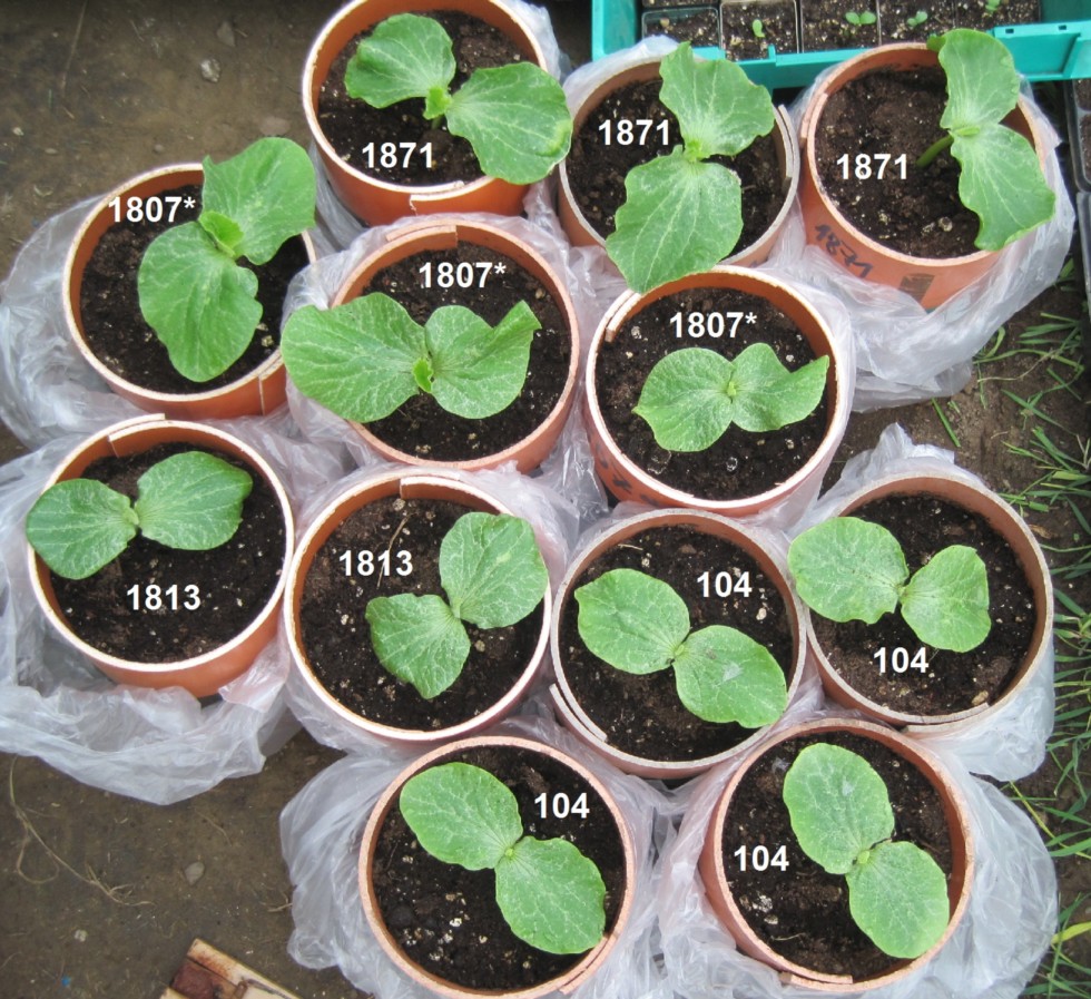 ...and this is the set of babies supposed to paint my patch in beautiful green very soon (1871 Cutrupi 17, 1807* Holub 17, 1813 Northrup 13 and 104 (uow) Wagler 17). Now they are 10 days old (seeds started on 6th April). I haven�t filed any of them, I�ve just let them soak for about 20 minutes and then buried them (flat side) under 1.5 - 2 inches of seed starting mix. They came up within 5 - 7 days and almost all of them left their shell under the surface. Only the 1813s (both of them) managed to lift the seed coat above surface, but it was soft and the cotyledons already widened it enough so I could easily pull it off (very carefully and without any difficulty). Their size is essentially proportional to the time spent above ground, so one can easily tell that two of the 1807* emerged from the soil after 5 days, the last 1807* after 7 days.