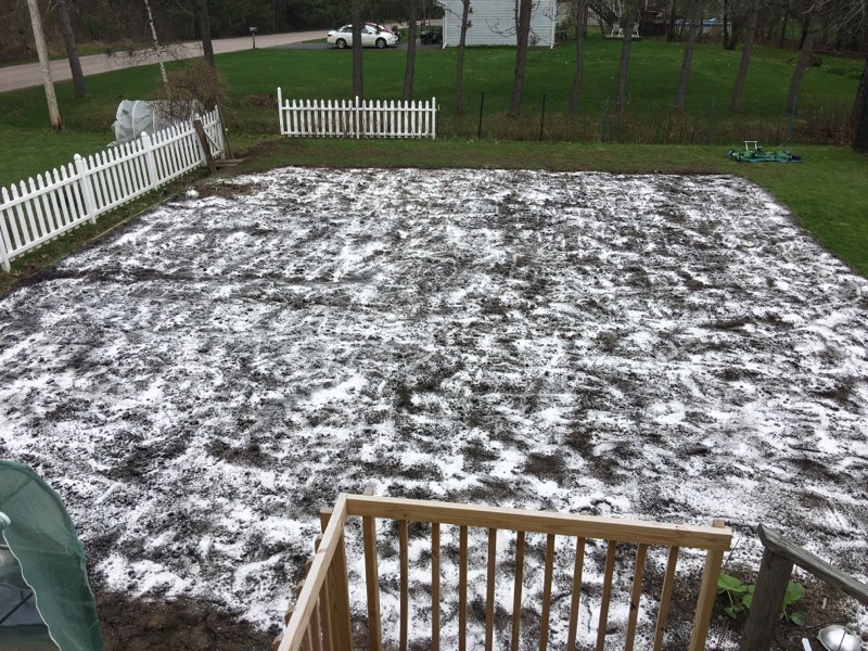 New patch 40� x 50�. We added a bit to this patch as Kerry wants to try bushel gourds this year. This patch will have 3 ag�s at 600 square feet each and one 150 square foot plant. Here is the patch with 12 yards of compost, 50 pounds of calcium nitrate, 50 pounds of 0-0-50, 50 pounds of kelp meal and 16 cubic feet of perlite.