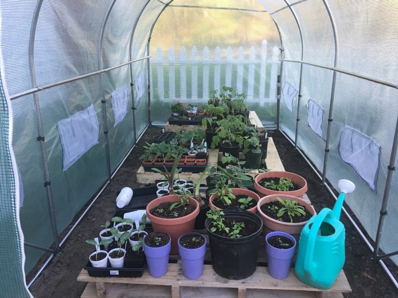 Green house is full. Our 150 plants are in one gallon pots along with long gourds, bushel gourds and giant tomatoes.