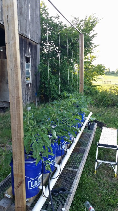 Tomato setup complete. Using twine and clips designed for tomato plant support again this year. They are removable so if/when they get to tight I can make adjustments. Pleased with plant development. Using a little different feeding formula compared to previous years.