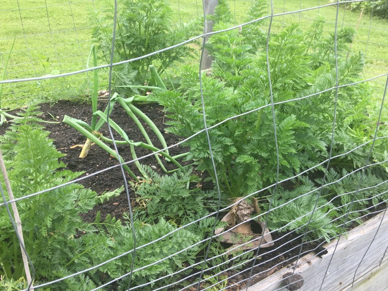 Tiki man is hanging with giant carrots which have huge tops. Who knows what�s going on below ground? Let�s hope they are not �all hat and no cattle�!