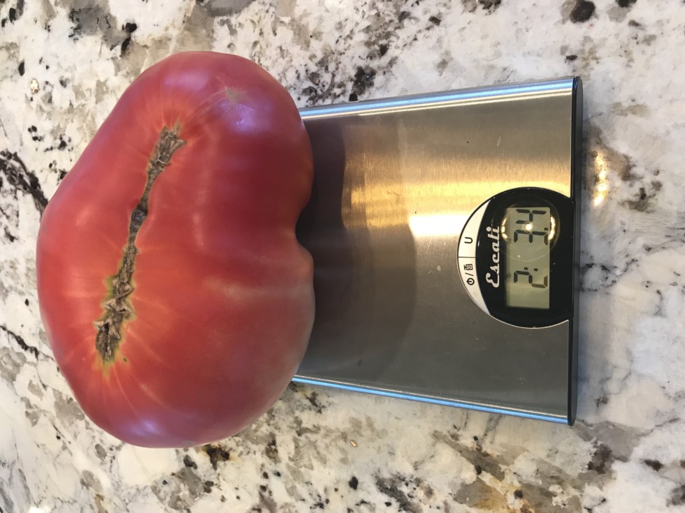 I like that this tomato kept a pretty shape to it and didn't crack on the bottom at all. This is the same tomato just flipped upside down.