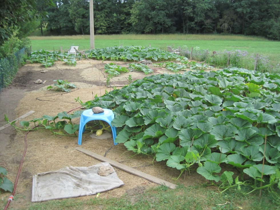 Patch view from a different perspective. In the shade of the blue table there�s the potential keeper of my 1871 plant ("Fiyero").