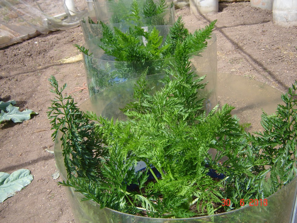 Carrots in my netted tunnel have made strong lush foliage with watering every evening.