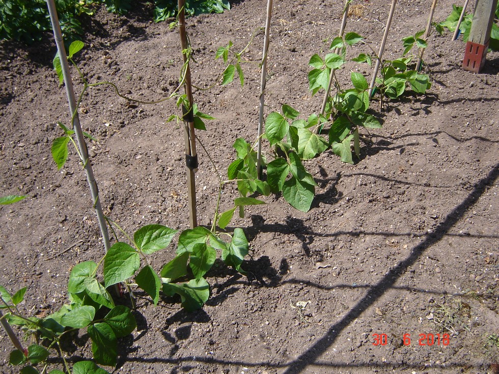 Long Runner beans not liking it so hot and dry, reluctant to start watering these as Moles will be a problem here.