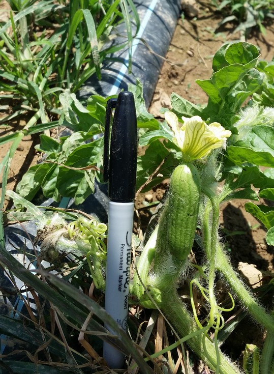 Melon plants are bouncing back as best they can. Growth is expanding from the tangles. The plants in general are about the size where I'd expect to start seeing the females I'd use if I was hoping for a competition fruit and those females are appearing. Even though this is only a 3 lober the length was 43 mm, she has produced 4's. A sister plant had a 4 lober at 42 mm also this morning. Selfed both plants. Found the first 5 lobed females this morning on various families. One of the 145.5 plants had a 3 lobed 29 mm, 4 lobed 29 mm and 4 lobed 31 mm female on separate side vines. With luck these will give us an "indication" if lobe count and female length really matter, that's assuming they all had good pollinations etc.