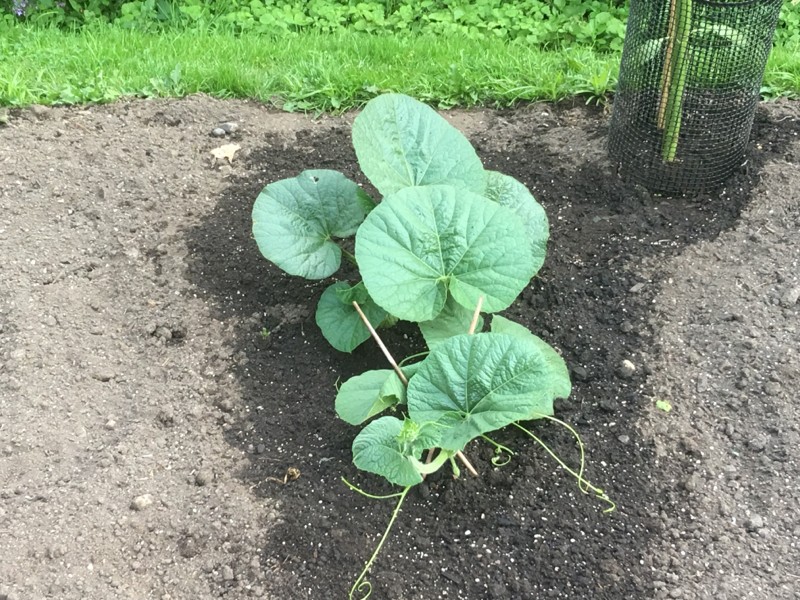 265 Engel bushel gourd is 3 feet long tonight and starting to run nicely.