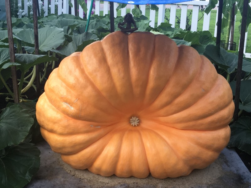 Peppermint Patty off the 910 Young is a tall wide pumpkin but doesn�t have depth. She is 47 days old today and has an OTT of 305 inches. Color is coming in nice!