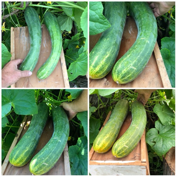 Here�s the last 5 days growth on the cucumbers..they should still grow in length for a week or so(if they do what the other one did)...and then they get FAT...lmao ...holy crap...can only imagine what they would do on a trained plant ...