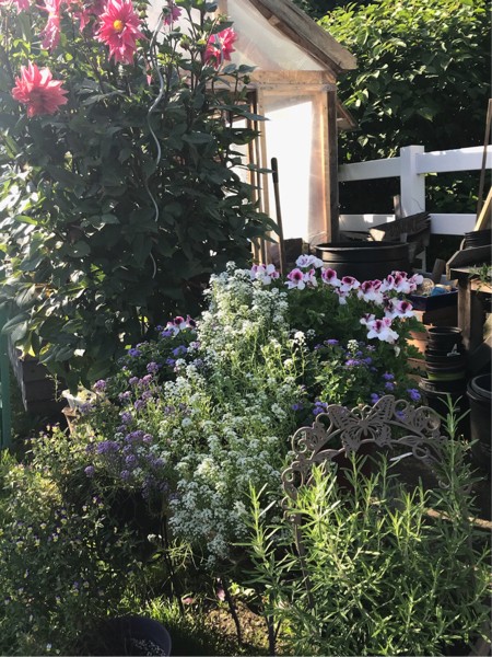I may regret getting that light for lambchop this winter...most of the flowers in the gardens she started from seed...pretty neat that they are doing so well...hummingbirds are everywhere now...oh yea...speaking of lambchop ...