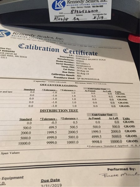 We are ready for Gale Woods. Had my scale recalibrated and certified for this year. It held quite stable for the past year. It was off 2 grams at the high range of 10000 grams (22 pounds). It was recalibrated to show the right number. I think I have a good scale...only .02 % off at the high extreme range after one year. How many years before tomatoes are out of the range of my scale?