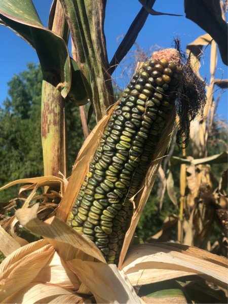 Speaking of harvest season...the hierloom green corn did great this year...these are awesome...I planted them next to the tall corn in hopes that maybe they would cross..